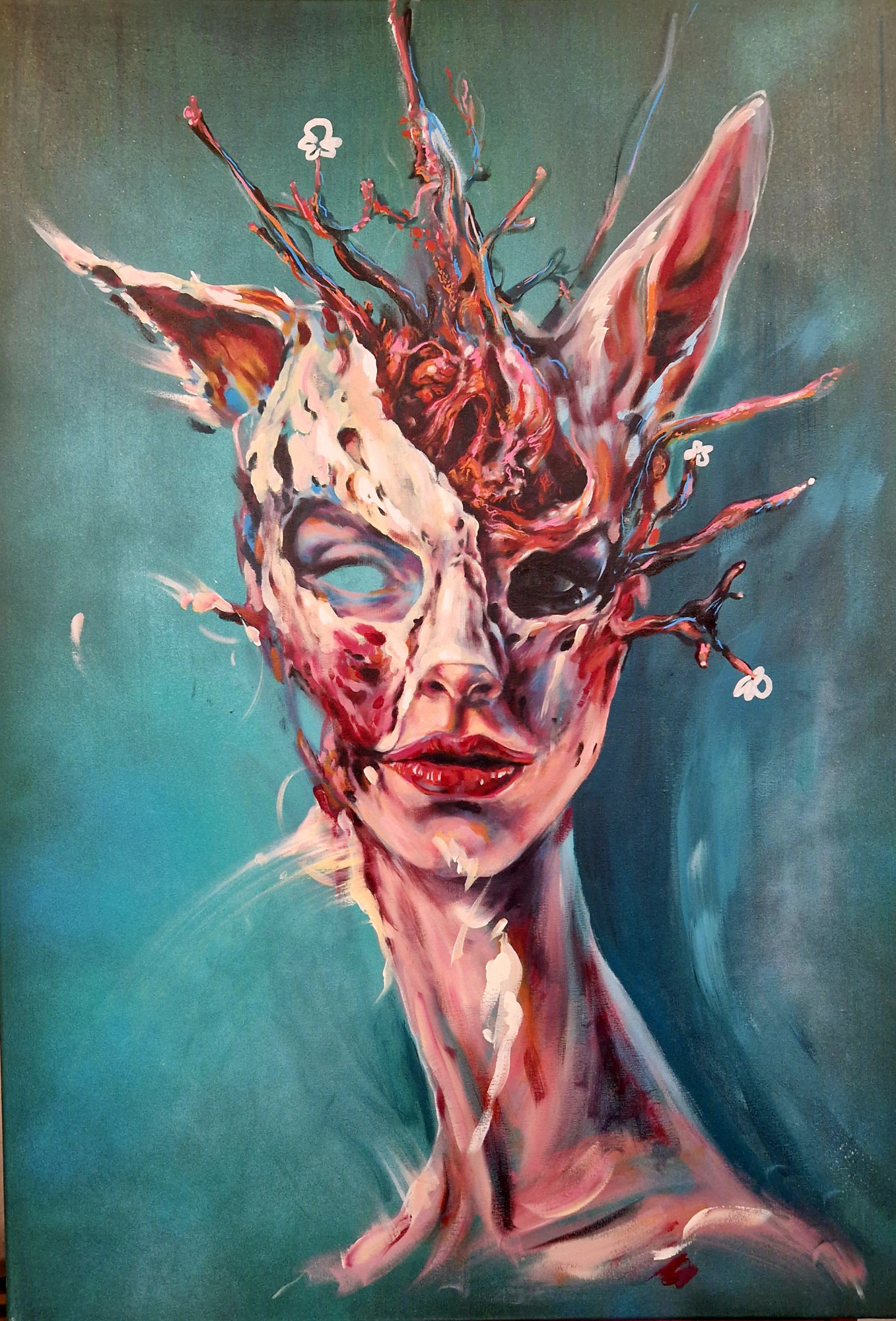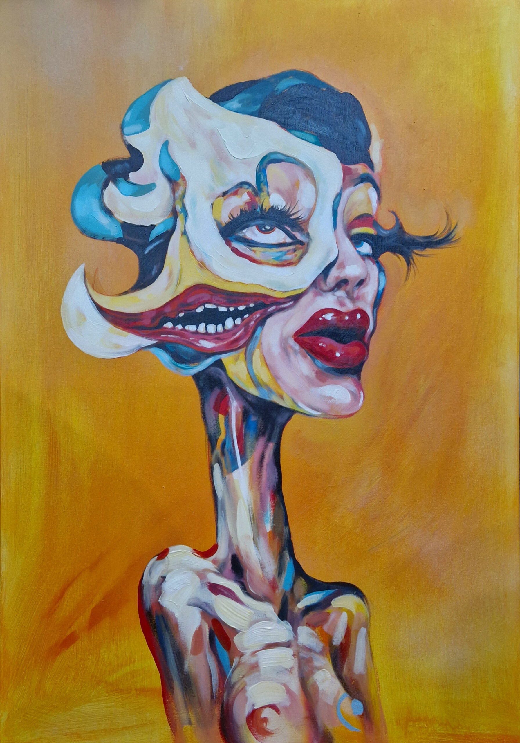 Ez a fajta kifejezésmód a portréfestészet elmentett “öntu-data”, ahol önmagunk pimasz, fragmentált, kifigurázott és szerethetően abszurd árnyképei teremtődnek…
