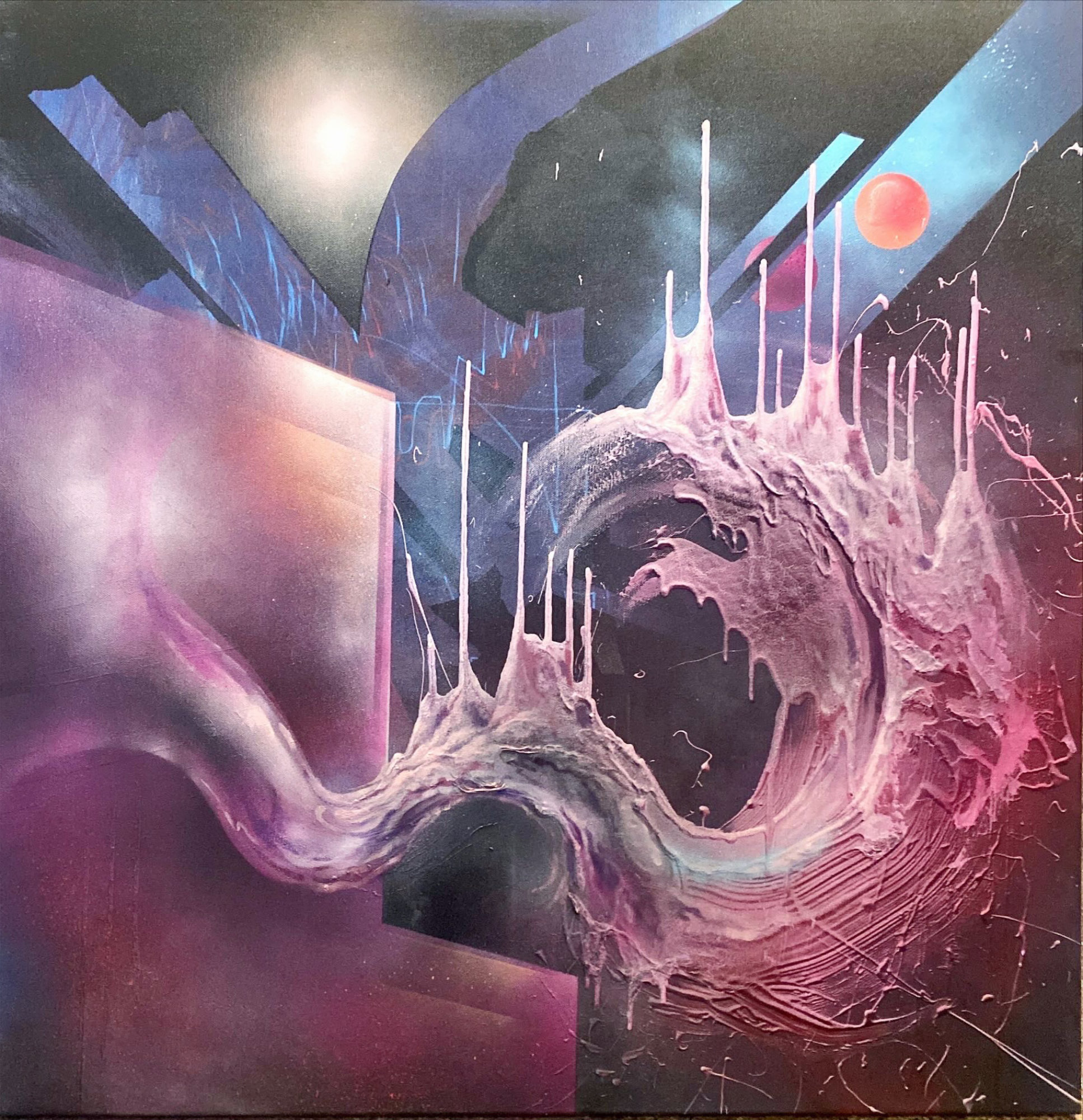 Groteonia, 100 x 100 cm, akril, vászon, 2024-25, magántulajdon