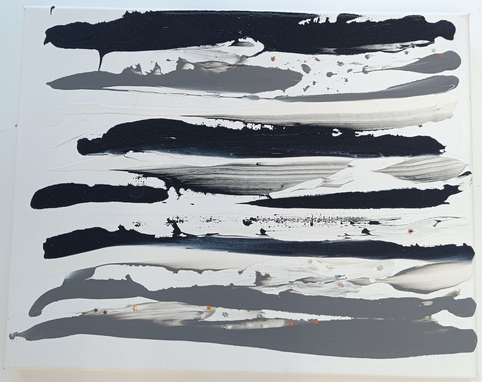 Fekete fehér, 25 x 30 cm, akril, vászon, magántulajdon